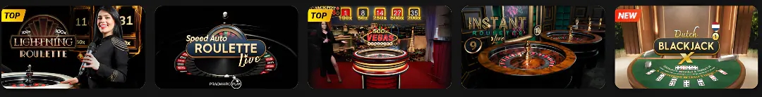 Vivez l’ambiance traditionnelle de la roulette comme si vous étiez à une à une véritable table de casino physique. Nos jeux de roulette en direct comme Speed Auto Roulette Live et Instant Roulette Live vous embarquent dans une expérience immersive unique. Choisissez vos numéros et suivez la bille avec impatience en temps réel.